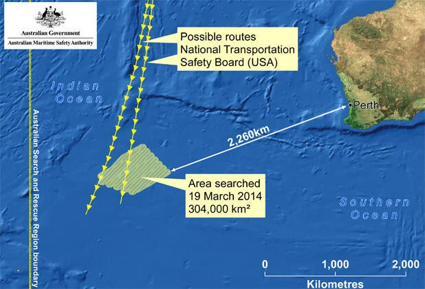 Military planes from Australia, the U.S. and New Zealand have been covering a search region over the southern Indian Ocean that was narrowed down from 232,000 square miles to 117,000 square miles.